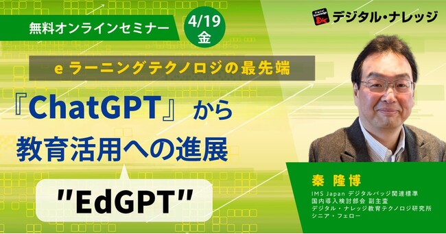 生成AIの教育活用”EdGPT”への進展 ≪デジタル・ナレッジ教育テクノロジ研究所 オンラインセミナー≫中級編3/15(金)・初級編4/19(金)~ChatGPTアプリの体験ハンズオンを交えてご紹介~