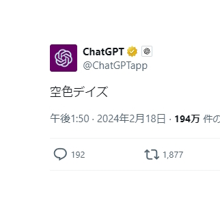 「ChatGPT」公式Xがなぜか「空色デイズ」とだけ日本語で投稿!? もしや画像生成AI「Sora」の元ネタなのか……/中川翔子さんの「天元突破グレンラガン」主題歌、どうして急に?【やじうまの杜】