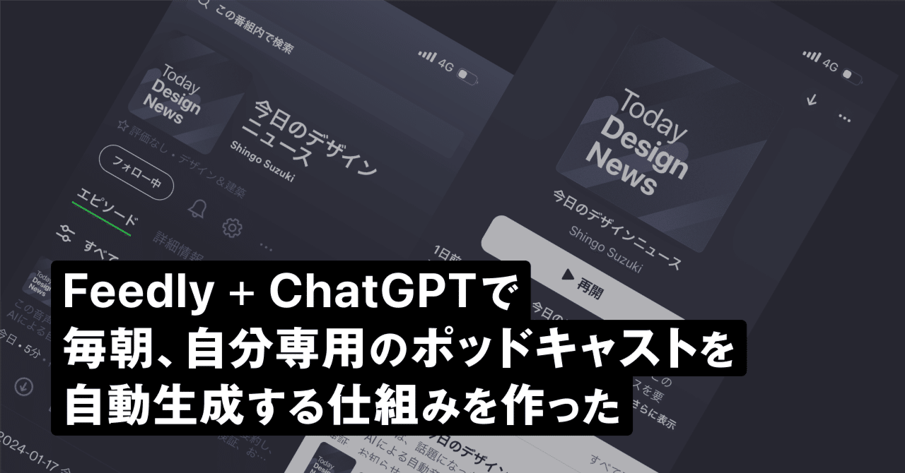 Feedly + ChatGPTで、毎朝 自分専用のポッドキャストを自動生成する仕組みを作った|鈴木慎吾 / TSUMIKI INC.