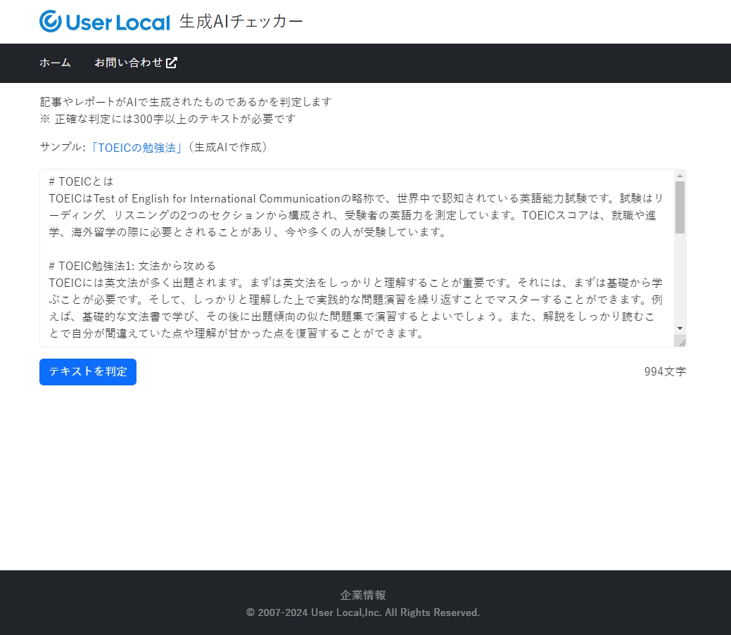 「生成AIチェッカー」が無償公開 ~生成AIが書いた論文やレポートかどうかを瞬時に判定してくれる/会員登録不要、日本語の論文・レポートに対応