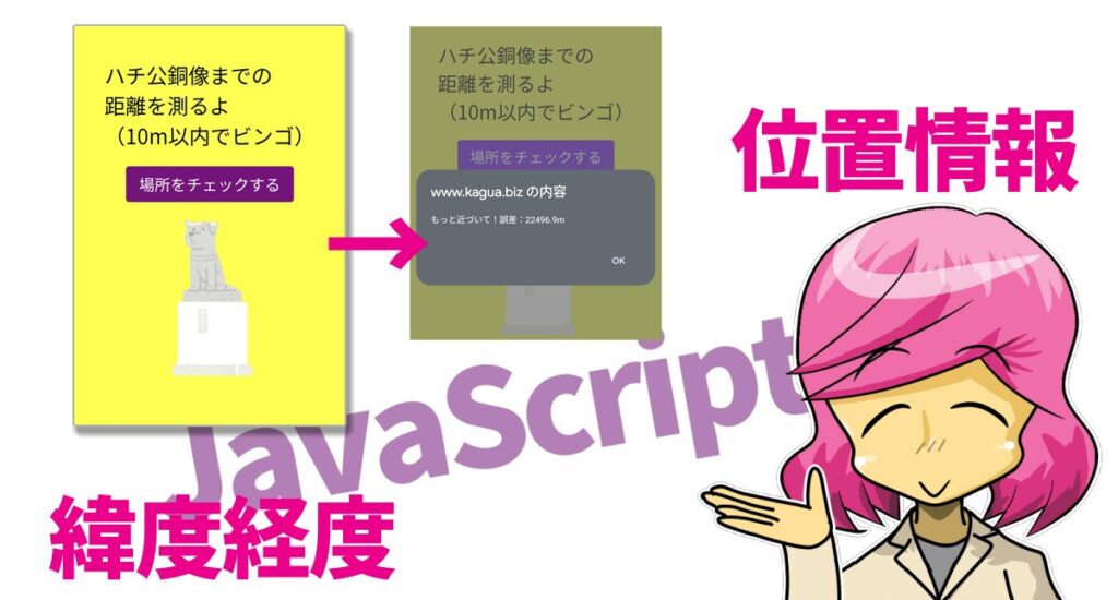 現在地を取得して特定地点との距離を表示するJavaScript