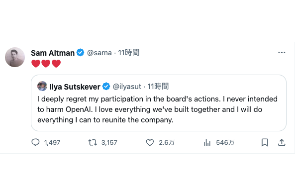 OpenAI従業員の9割、アルトマン復帰なければ退職と署名