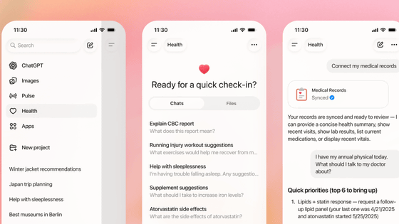 OpenAIが「ChatGPT ヘルスケア」を発表、ChatGPTが個人の健康記録やアプリのデータに接続して問診してくれる