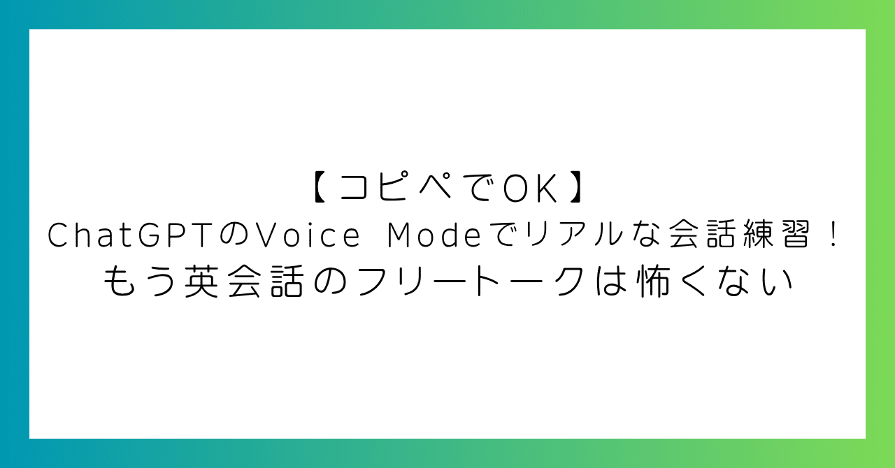 【コピペでOK】ChatGPTのVoice Modeでリアルな会話練習!もう英会話のフリートークは怖くない|genkAIjokyo|ChatGPT/Claudeで論文作成と科研費申請