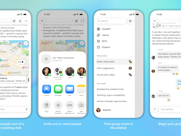 「ChatGPT」にグループチャット機能が追加、最大20人がWebとモバイルで会話/日本などでパイロット提供が開始、無償でも利用OK