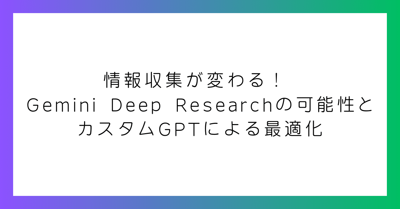 情報収集が変わる! Gemini Deep Researchの可能性とカスタムGPTによる最適化|genkAIjokyo|ChatGPT/Claudeで論文作成と科研費申請