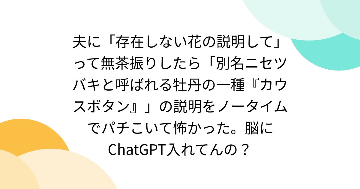 夫に「存在しない花の説明して」って無茶振りしたら「別名ニセツバキと呼ばれる牡丹の一種『カウスボタン』」の説明をノータイムでパチこいて怖かった。脳にChatGPT入れてんの?