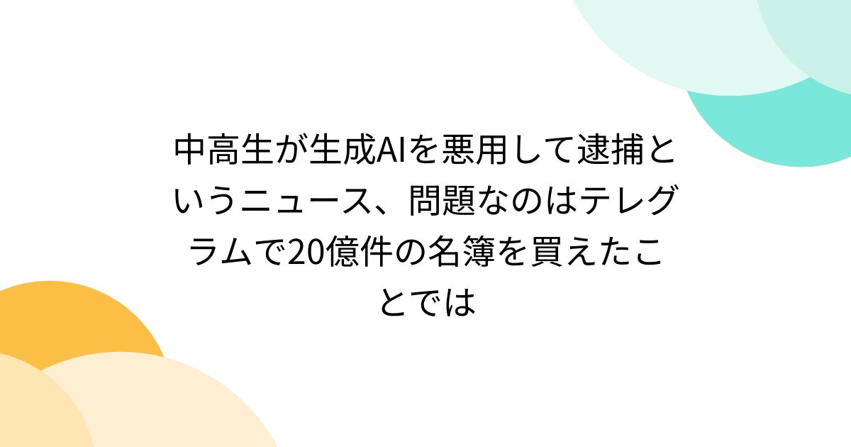 中高生が生成AIを悪用して逮捕というニュース、問題なのはテレグラムで20億件の名簿を買えたことでは