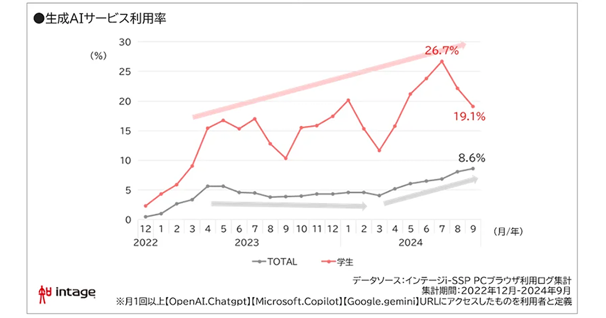 生成AI、学生および企業規模が大きく上位の役職者ほど積極的に活用【インテージ調査】