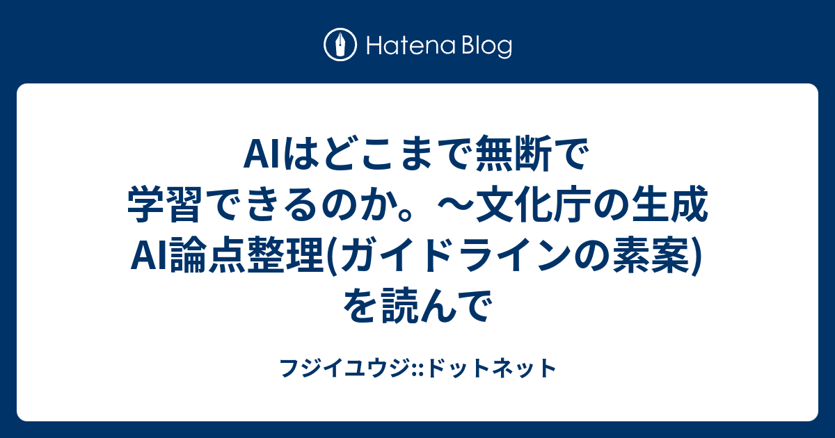 AIはどこまで無断で学習できるのか。~文化庁の生成AI論点整理(ガイドラインの素案)を読んで - フジイユウジ::ドットネット