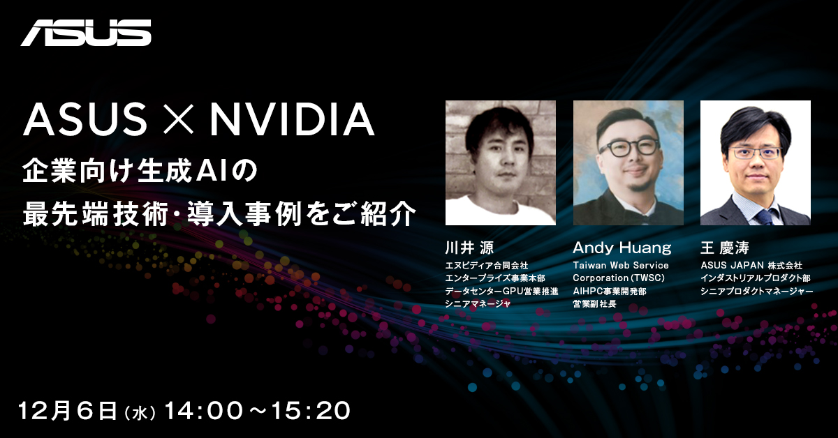 ASUSとNVIDIAの生成AI最新技術や導入事例を紹介する企業向け無料ウェビナー、12月6日に実施