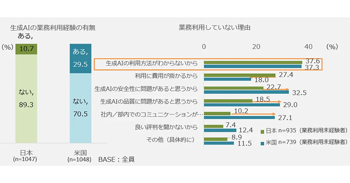 生成AIの利用経験率は米国約3割、日本約2割/業務利用は米国が日本の3倍に【GMOリサーチ調査】