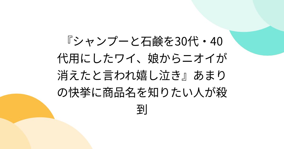『シャンプーと石鹸を30代・40代用にしたワイ、娘からニオイが消えたと言われ嬉し泣き』あまりの快挙に商品名を知りたい人が殺到
