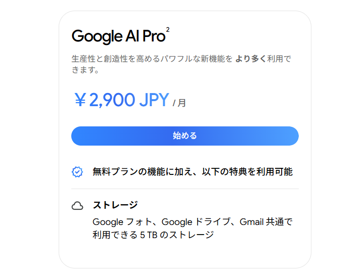 「Google AI Pro」のストレージ容量が2TBから一挙5TBに/ストレージとAI機能をセットにした「Google AI」サブスクリプションの中間プラン
