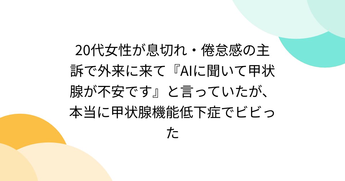 20代女性が息切れ・倦怠感の主訴で外来に来て『AIに聞いて甲状腺が不安です』と言っていたが、本当に甲状腺機能低下症でビビった