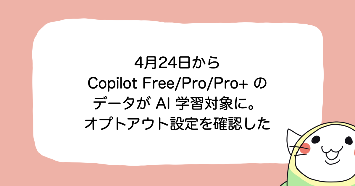 4月24日から Copilot Free/Pro/Pro+ のインタラクションデータが AI モデルの学習に使用されるようになるので設定を確認した