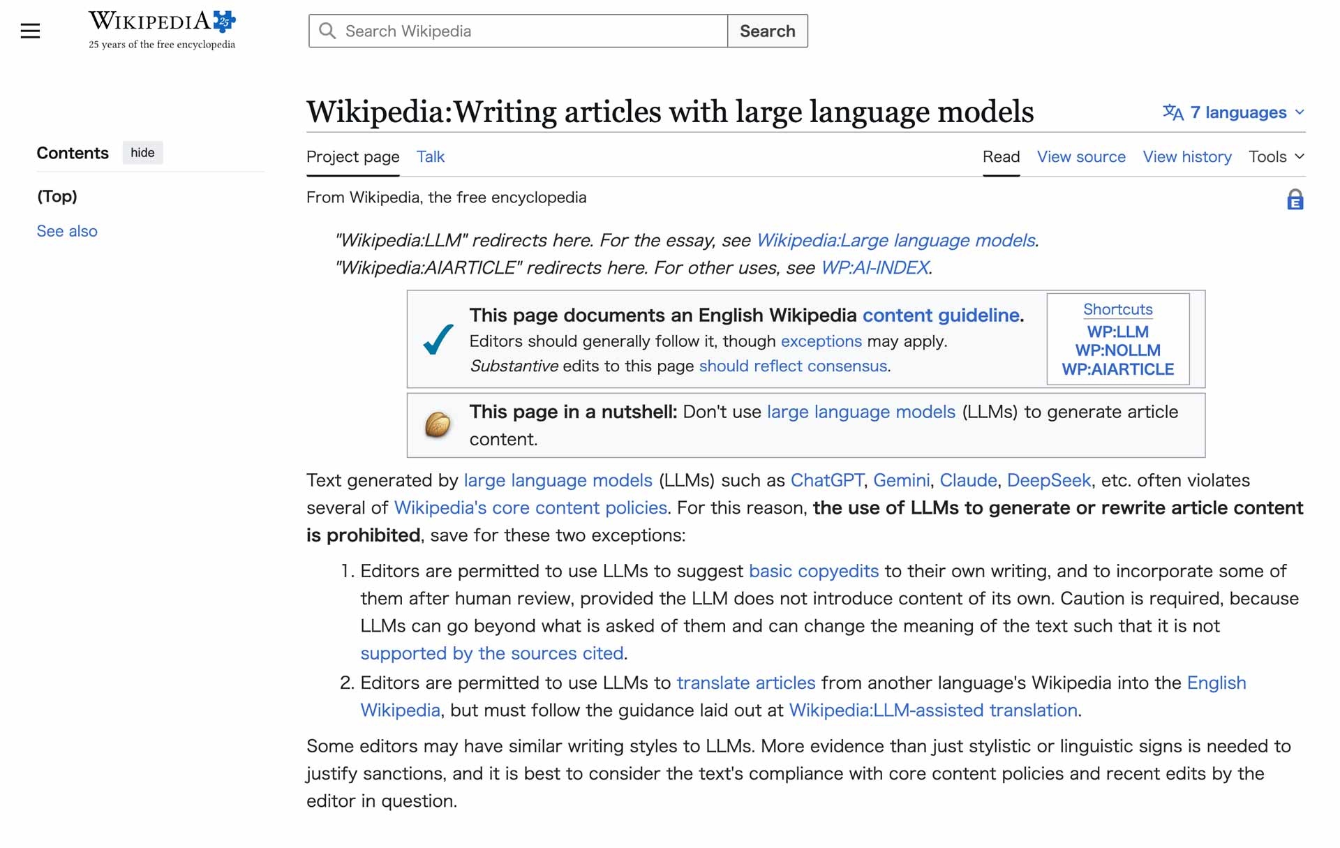 Wikipedia英語版、生成AIを使用した記事執筆を原則禁止に 言語で異なるAIへの対応
