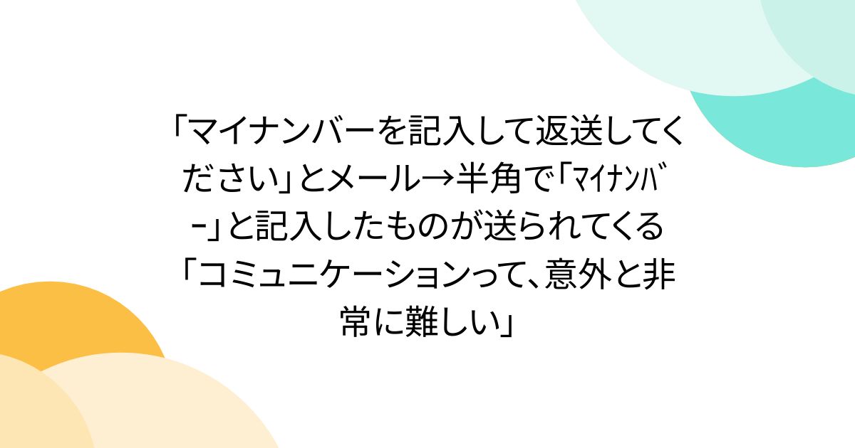 「マイナンバーを記入して返送してください」とメール→半角で「マイナンバー」と記入したものが送られてくる「コミュニケーションって、意外と非常に難しい」