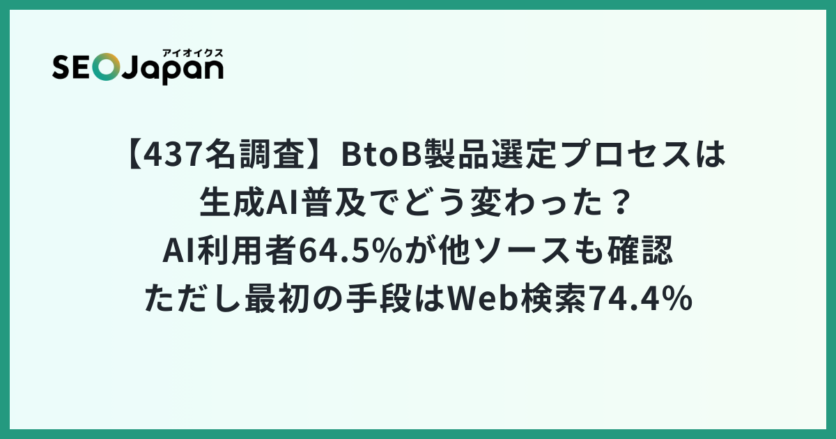 【437名調査】BtoB製品選定プロセスは生成AI普及でどう変わった?AI利用者64.5%が他ソースも確認、ただし最初の手段はWeb検索74.4%